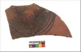 | Description / विवरण | Specimen of potsherd with black decorative geometric painting. Type Black on Red Ware . |