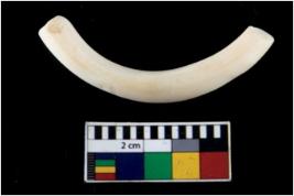 | Description / विवरण | Fragment of an undecorated shell bangle. It is creamish in colour and rectangular in cross section. |