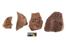 | Description / विवरण | A Sub rectangular flake with wavy thick distal end and broken functional top. It reined pebbly cortex on one side and irregular thin edge on the other. The dorsal is relatively flat. A patch of cortex near the section which is slanting to the dorsal |
