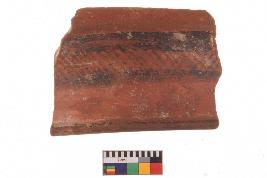 | Description / विवरण | Specimen of potsherd with decorative geometric Linear painting, Type Black on Red Ware . |