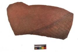 | Description / विवरण | Specimen of black on red ware with decorative geometric Two horizontal bands containing criss-cross pattern painting. |