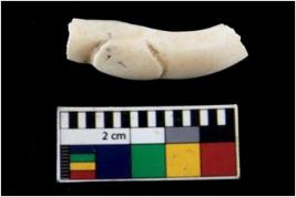 | Description / विवरण | Fragment of an undecorated shell bangle. It is creamish in colour and rectangular in cross section. |