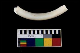| Description / विवरण | Fragment of an undecorated shell bangle. It is creamish in colour and rectangular in cross section. |