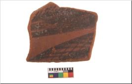 | Description / विवरण | Specimen of potsherd with black decorative geometric painting. Type Black on Red Ware . |