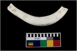 | Description / विवरण | Fragment of an undecorated shell bangle. It is creamish in colour and rectangular in cross section. |