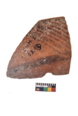 | Description / विवरण | Specimen of a potsherd with black decorative geometric painting. |