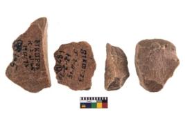 | Description / विवरण | A Sub rectangular flake with wavy thick distal end and broken functional top. It reined pebbly cortex on one side and irregular thin edge on the other. The dorsal is relatively flat. A patch of cortex near the section which is slanting to the dorsal |