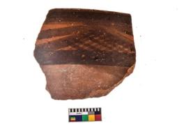 | Description / विवरण | Specimen of a potsherd with black decorative geometric painting. |