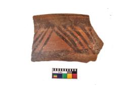 | Description / विवरण | Specimen of a potsherd with black decorative geometric painting. |