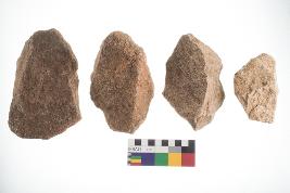 | Description / विवरण | There are n-4 of utilized flake cores. There are multidirectional irregular dominant scar pattern on both dorsal and ventral face of the cores. |