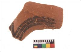 | Description / विवरण | Specimen of potsherd with black decorative geometric painting. Type Black on Red Ware . |