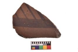 | Description / विवरण | Specimen of black on red ware with decorative geometric painting. |