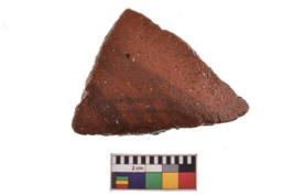 | Description / विवरण | Specimen of black on red ware with decorative geometric A row of latticed diamonds set in horizontal bands but having groups of oblique lines at intervals painting. |