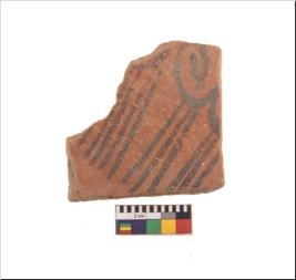 | Description / विवरण | Specimen of potsherd with black decorative geometric painting. Type Black on Red Ware . |