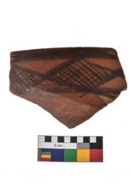 | Description / विवरण | Specimen of a potsherd with black decorative geometric painting. |