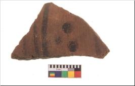 | Description / विवरण | Specimen of potsherd with black decorative geometric painting. Type Black on Red Ware . |