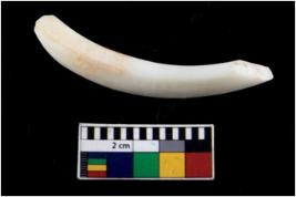 | Description / विवरण | Fragment of an undecorated shell bangle. It is creamish in colour and rectangular in cross section. |