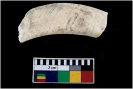 | Description / विवरण | Fragment of an undecorated shell bangle. It is creamish in colour and rectangular in cross section. |