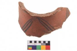 | Description / विवरण | Specimen of potsherd with decorative geometric Linear painting, Type Black on Red Ware . |