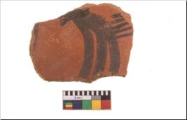 | Description / विवरण | Specimen of potsherd with black decorative geometric painting. Type Black on Red Ware . |