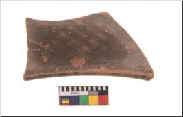| Description / विवरण | Specimen of potsherd with black decorative geometric painting. Type Black on Red Ware . |