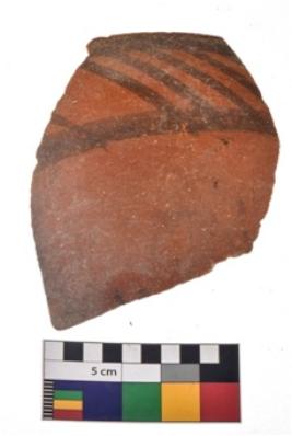 | Description / विवरण | Specimen of a potsherd with black decorative geometric painting. |