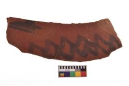 | Description / विवरण | Specimen of black on red ware with decorative geometric Two vertical zigzag band painting. |