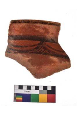 | Description / विवरण | Specimen of a potsherd with black decorative geometric painting. |