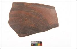 | Description / विवरण | Specimen of potsherd with black decorative geometric painting. Type Black on Red Ware . |