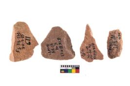 | Description / विवरण | A Sub rectangular flake with wavy thick distal end and broken functional top. It reined pebbly cortex on one side and irregular thin edge on the other. The dorsal is relatively flat. A patch of cortex near the section which is slanting to the dorsal |