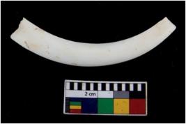 | Description / विवरण | Fragment of an undecorated shell bangle. It is creamish in colour and rectangular in cross section. |