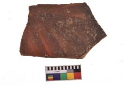 | Description / विवरण | Specimen of black on red ware with decorative geometric Its decorated with two horizontal bands sets of triple arches painting. |