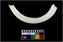 | Description / विवरण | Fragment of an undecorated shell bangle. It is creamish in colour and rectangular in cross section. |
