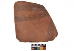 | Description / विवरण | Specimen of black on red ware with decorative geometric parallel lines painting. |
