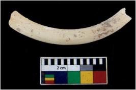 | Description / विवरण | Fragment of an undecorated shell bangle. It is creamish in colour and rectangular in cross section. |