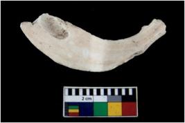 | Description / विवरण | Fragment of an undecorated shell bangle. It is creamish in colour and rectangular in cross section. |
