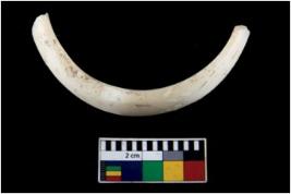 | Description / विवरण | Fragment of an undecorated shell bangle. It is creamish in colour and rectangular in cross section. |