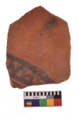 | Description / विवरण | Specimen of black on red ware with decorative geometric A row of arches over a horizontal band painting. |