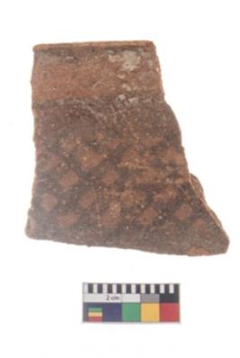 | Description / विवरण | Specimen of potsherd with black decorative geometric painting . |