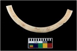 | Description / विवरण | Fragment of an undecorated shell bangle. It is creamish in colour and rectangular in cross section. |