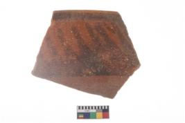 | Description / विवरण | Specimen of potsherd with black decorative geometric painting . |