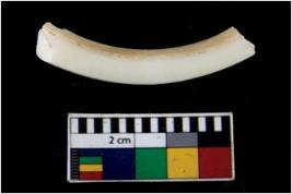 | Description / विवरण | Fragment of an undecorated shell bangle. It is creamish in colour and rectangular in cross section. |