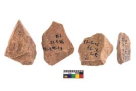 | Description / विवरण | A Sub rectangular flake with wavy thick distal end and broken functional top. It reined pebbly cortex on one side and irregular thin edge on the other. The dorsal is relatively flat. A patch of cortex near the section which is slanting to the dorsal |
