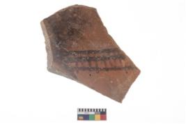 | Description / विवरण | Specimen of potsherd with black decorative geometric painting . |