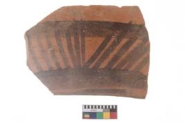 | Description / विवरण | Specimen of potsherd with black decorative geometric painting . |