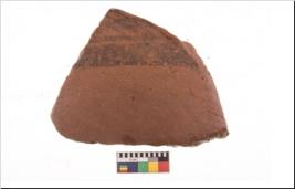 | Description / विवरण | Specimen of potsherd with black decorative geometric painting. Type Black on Red Ware . |