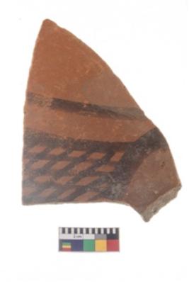 | Description / विवरण | Specimen of potsherd with black decorative geometric painting . |