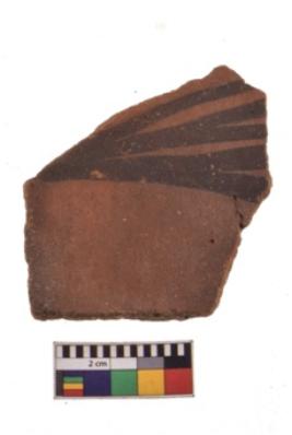 | Description / विवरण | Specimen of black on red ware with decorative geometric Its decorated with two horizontal bands sets of triple arches painting. |