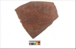 | Description / विवरण | Specimen of potsherd with black decorative geometric painting. Type Black on Red Ware . |