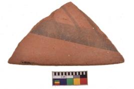 | Description / विवरण | Specimen of black on red ware with decorative geometric Outcurved lines painting. |